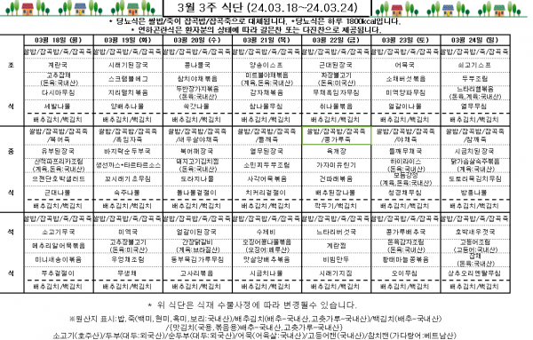 "금주의 식단 메뉴를 확인 할 수 있습니다."