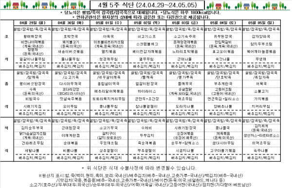 "금주의 식단 메뉴를 확인 할 수 있습니다."