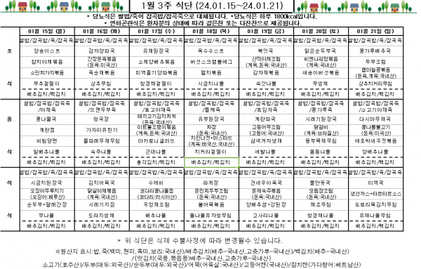 "금주의 식단 메뉴를 확인 할 수 있습니다."