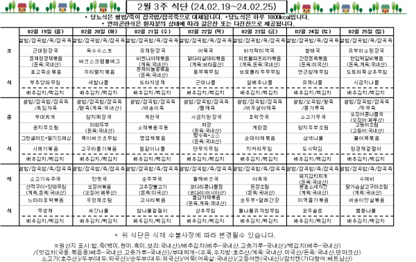 2월 3주 식단표