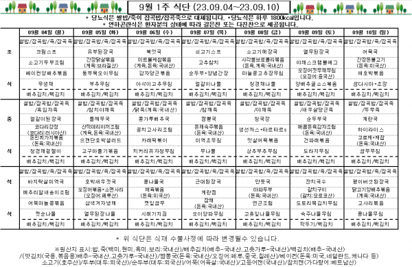 "금주의 식단 메뉴를 확인 할 수 있습니다."