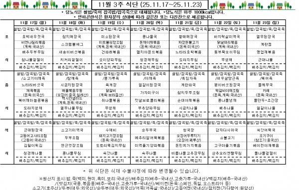 "금주의 식단 메뉴를 확인 할 수 있습니다."