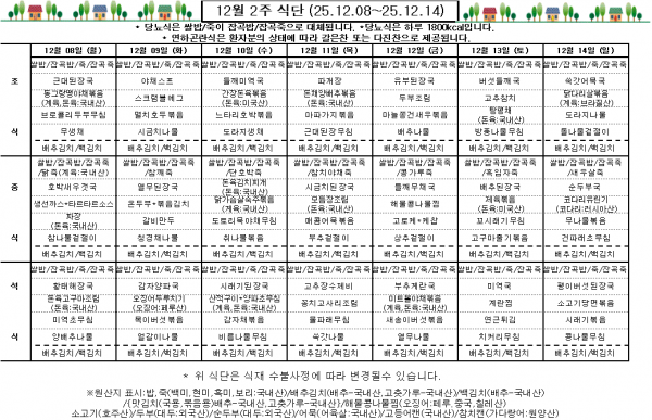 12월 2주 식단표