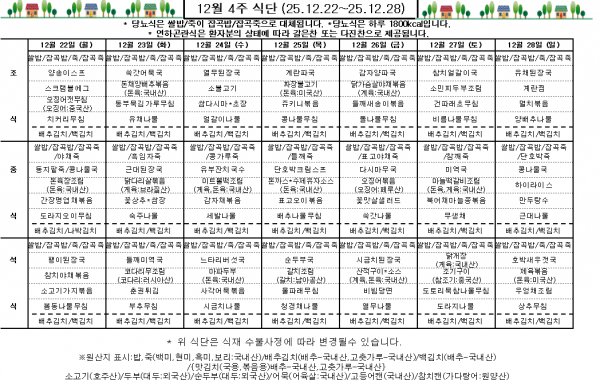 12월 4주 식단표