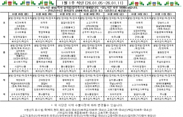 1월 1주 식단표