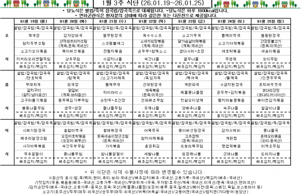 1월 3주 식단표