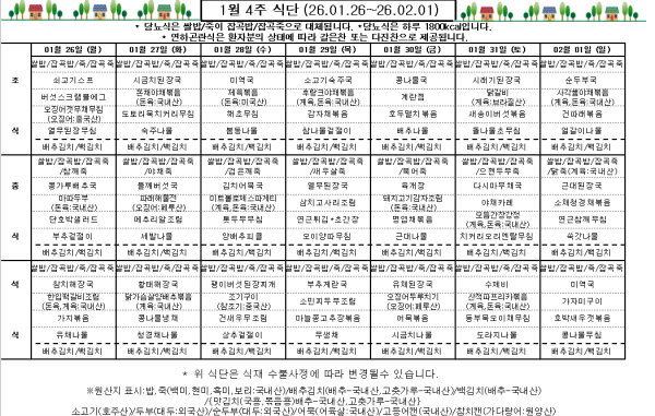 "금주의 식단 메뉴를 확인 할 수 있습니다."