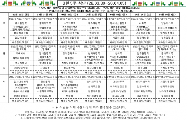 "금주의 식단 메뉴를 확인 할 수 있습니다."