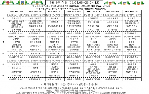 "금주의 식단 메뉴를 확인 할 수 있습니다."