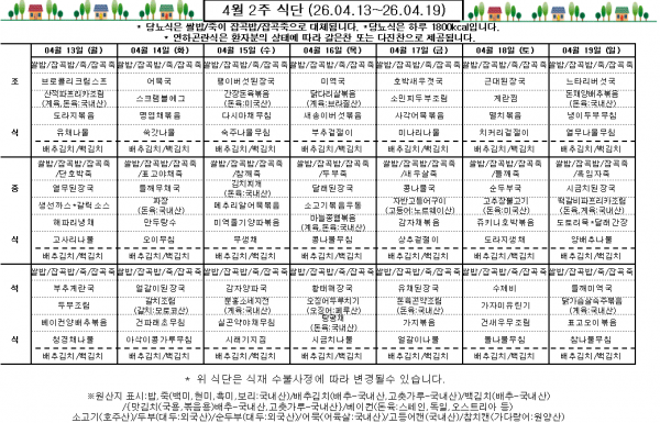 4월 2주 식단표